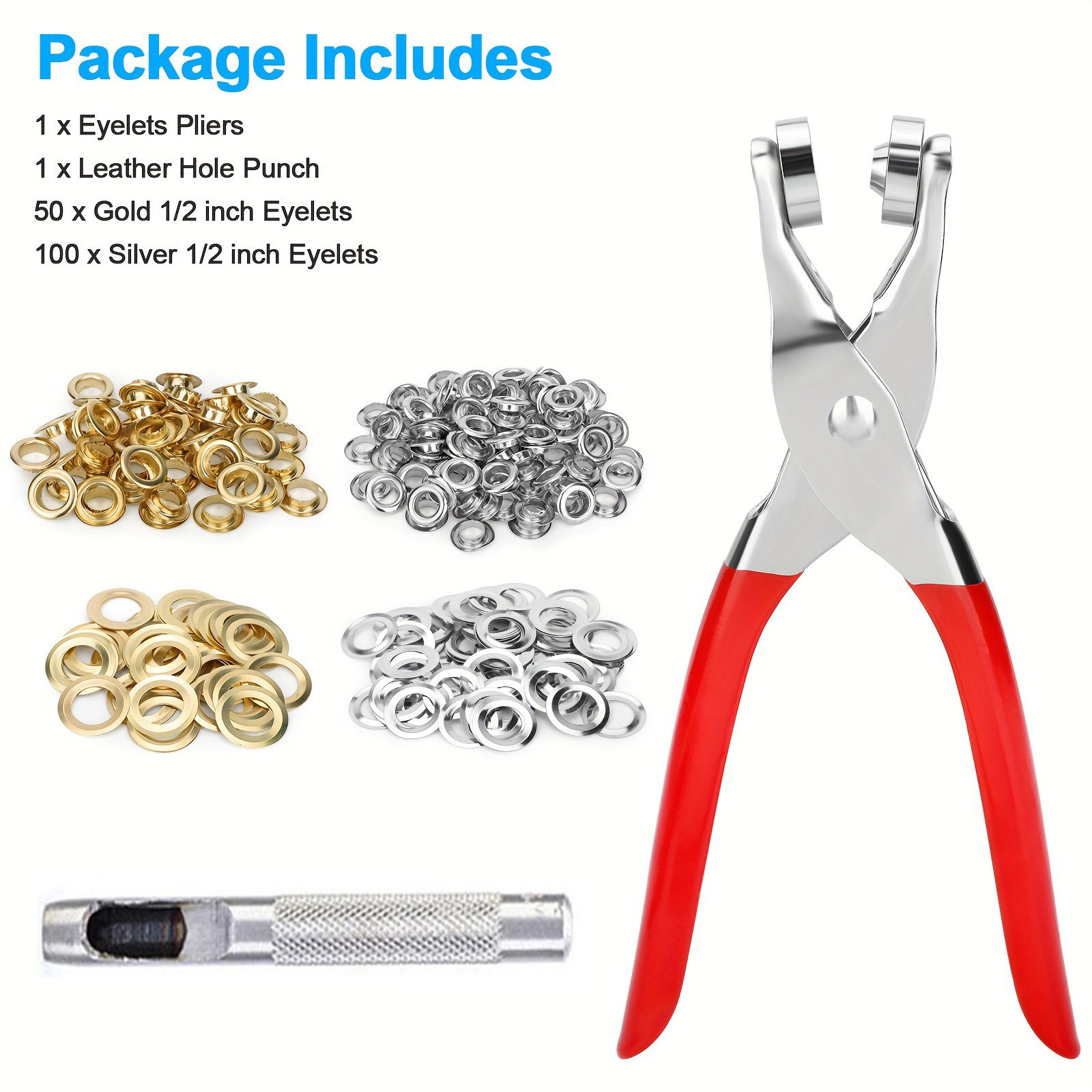 Grommet Tool Kit Handheld Hole Punch Pliers Portable Eyelet Rivet Hand Machine Manual Puncher with 500pcs 10mm Grommets