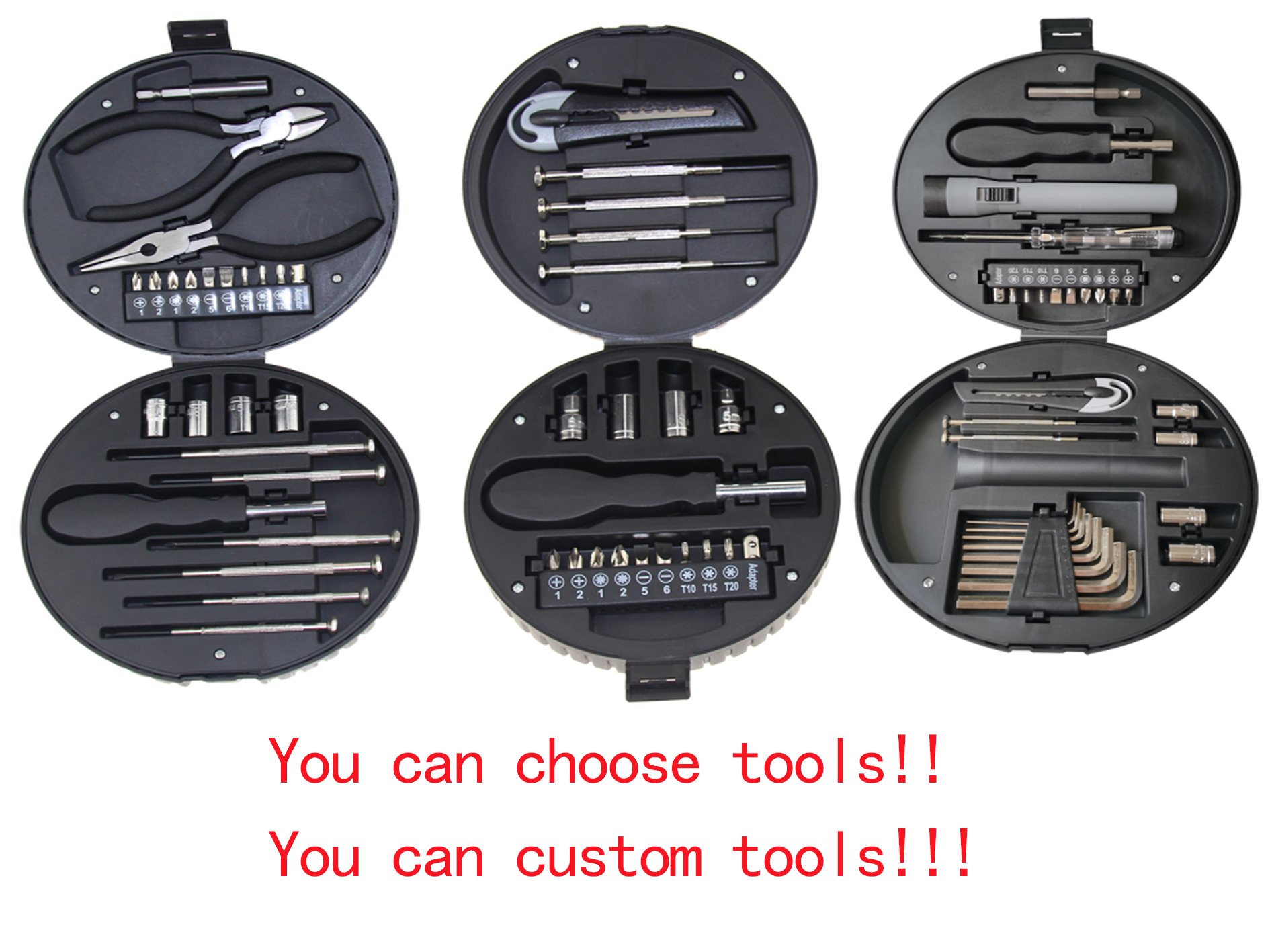 1The kit box can be folded ,easy to store.It is made for home use.The set includes 20 pcs tools.It contains daily use tools.